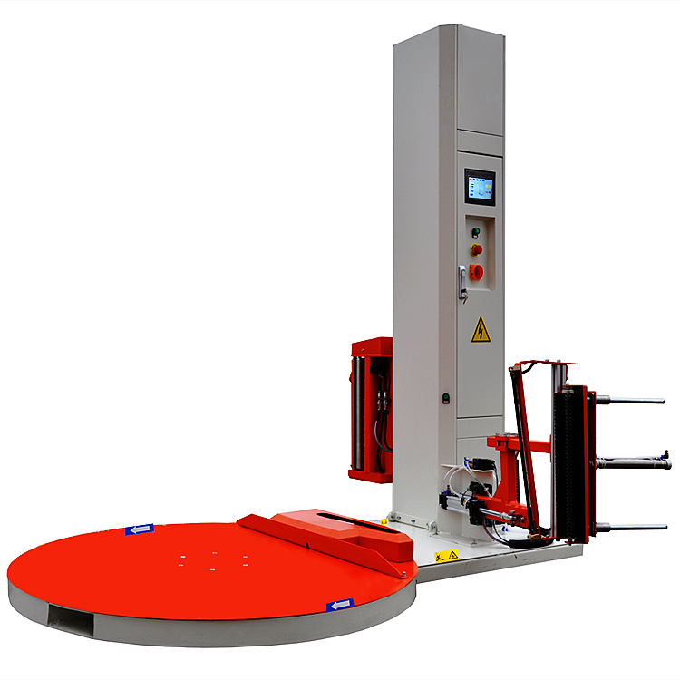 托盤(pán)纏繞機(jī)是指通過(guò)轉(zhuǎn)臺(tái)旋轉(zhuǎn)帶動(dòng)托盤(pán)貨物轉(zhuǎn)動(dòng),進(jìn)而實(shí)現(xiàn)對(duì)貨物纏繞裹包的設(shè)備。適用于使用托盤(pán)裝運(yùn)的貨物包裝(如用于大宗貨物的集裝箱運(yùn)輸及散件托盤(pán)的包裝等),廣泛應(yīng)用于玻璃制品、五金工具、電子電器、造紙、陶瓷、化工、食品、飲料、建材等行業(yè)。能夠提高物流效率、減少裝運(yùn)過(guò)程中的損耗。具有防塵、防潮、降低包裝成本等優(yōu)點(diǎn)。